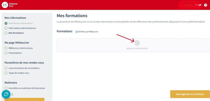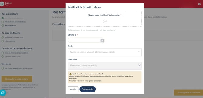 Ajouter une formation quand on vient d'arriver chez Médoucine (profil pas encore en ligne)