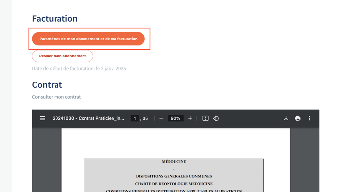 - Cliquez sur "Paramètres de mon abonnement et de ma facturation"